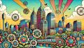 Vibrant Phoenix Skyline: A Fusion of Pop Art and Steampunk Aesthetics