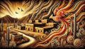 Enigmatic Flames and Adobe: A Surrealistic View of Ancient Hohokam Village