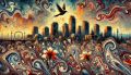 Surreal Phoenix Skyline, A Canvas of Cubism and Technicolor Dreams