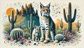 Desert Vigil: A Bobcat and Cub Amidst Vibrant Cacti Landscape