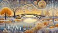 Enigmatic Winter Serenity: The Blue River in Gustav Klimt’s Style