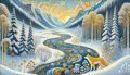 Winter's Majesty Along the Colorado River: A Klimt-Inspired Vista