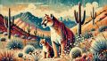 Majestic Mountain Lion and Cub in Vibrant Desert Artwork