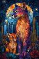Twilight Enchantment: Foxes Amidst a Floral Phoenix Cityscape
