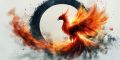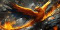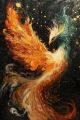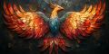 Blazing Phoenix Rising Vibrantly from Ashes in Artistic Glory