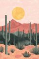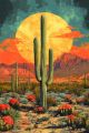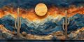 Majestic Saguaro Cacti under a Golden Moon in Layered Relief Art