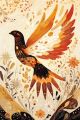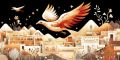 Intricately Designed Phoenix Cityscape in Folk Art Style