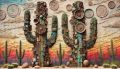 Abstract Saguaro Cacti Embodying Hohokam Culture Through Found Objects