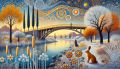 Autumn's Embrace at Agua Fria River Bridge: A Klimt-Inspired Vision