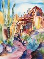 Vibrant Watercolor of Phoenix Desert Landscape with Rustic Adobe