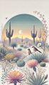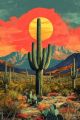 Vibrant Sunset Over a Stylized Desert Landscape with Cactus