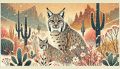 Artistic Interpretation of Bobcats in a Wintry Desert Ecosystem