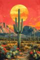 Vibrant Artistic Depiction of Phoenix's Desert Landscape and Mountains
