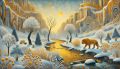 Enchanted Wintery River Landscape Inspired by Gustav Klimt’s Style