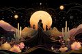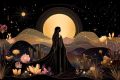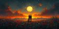 Illuminated Love: A Couple Under a Moonlit Sky Amidst a Floral Eden