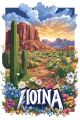 Vibrant Arizona Desert Landscape with Bold "Arizona" Typography