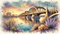 Enchanting Watercolor of Central Avenue Bridge at Sunset in Phoenix