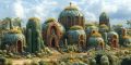 Enchanted Desert Monastery Blended with Lush Cacti Forest