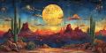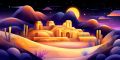 Enchanting Illustration of a Moonlit Desert Village in Arizona