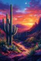 Vibrant Evening Symphony: Sunset and Cacti in Phoenix, Arizona
