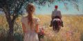 Nostalgic Summer Scene: Man on Horseback and Woman Admiring Nature