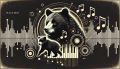 Harmonic Wilderness: Black Bears Amidst Golden Musical Elements