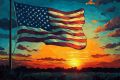 Majestic American Flag Undulating at Sunset in Vibrant Sky