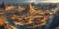 Breathtaking Sunset over a Fictional Ancient Cityscape