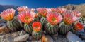 Vibrant Blossoms Adorn Desert Cacti Against Arizona's Blue Skies