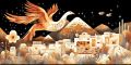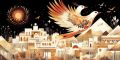 Vivid Phoenix Rising Above the City in Polygonal Brilliance