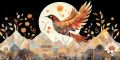 Enchanting Phoenix Bird Glides Gracefully Over Mountainous Desert Art