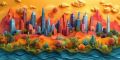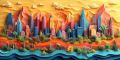 Vibrant Paper Art Depiction of Phoenix Skyline and Desert Landscape