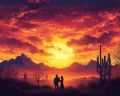 Sunset Embrace Amidst Cacti and Mountain Silhouettes in Phoenix