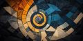Dynamic Spiral Mosaic Art in Vibrant Blue and Orange Hues