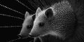 Intricate Digital Artwork of Two Hedgehogs in a Stylized Monochrome Design