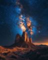 Majestic Night Sky over Monument Valley's Iconic Buttes