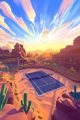 Surreal Desert Tennis Court Beneath Expansive Arizona Skies