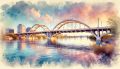 Serene Watercolor Rendering of Roosevelt Lake Bridge at Sunset