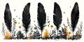 Striking Wall Art of Black and Golden Feathers with Naturistic Elements