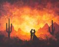 Romantic Silhouette of Couple at Sunset in Phoenix Desert
