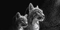Majestic Bobcats Amidst Fluorescent Stardust in Monochrome Art