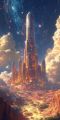 Majestic Futuristic City Rising from Sunlit Canyons Under Stars