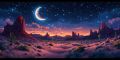 Mystical Desert Night: A Surreal Landscape Under Starry Skies