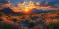 Majestic Sunset Over Phoenix Mountains with Colorful Desert Vegetation