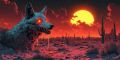 Sinister Red-Eyed Wolf Dominates the Gloaming Desert Landscape