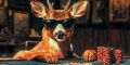 Stylish Deer Engages in a High Stakes Poker Game at Sunset