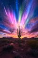 Vibrant Auroras Above a Majestic Saguaro Cactus in Phoenix, AZ