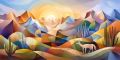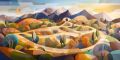 Surreal Landscape Art Blending Nature with Vibrant Colors and Shapes