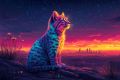 Majestic Cat Overlooking a Vibrant Desert City at Sunset