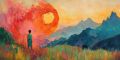 Surreal Desert Sunset: A Vivid Tapestry of Colors and Shapes